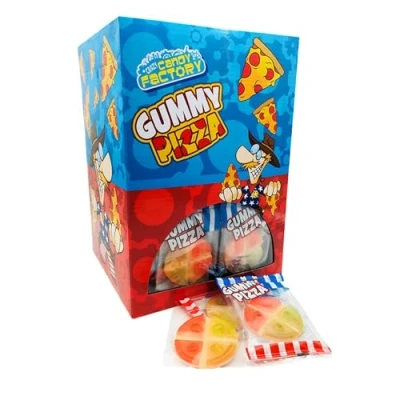 FRUIT FLAVOUR: A pack of 100 Crazy Candy Factory mini gummy pizza sweets, individually wrapped for freshness and convenience FUN NOVELTY: Enjoy these retro American candies with a unique pizza shape, edible toy for kids to delight in FEATURES: Each sweet offers a burst of fruit flavour that will satisfy any sweet tooth craving BULK VALUE: Perfectly portioned and individually wrapped, this pack of 100 is ideal for party bags, event giveaways, novelty collections, or simply adding a fun twist to your candy stash SWEET TREAT: These novelty gummy sweets add a playful touch to your snack time, perfect for those who enjoy quirky treats