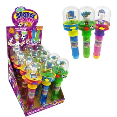 Crazy Candy Factory Sports Flickerz, Fruit Flavour Lollipop & Interactive Ball Game, 11 g (Pack of 12)