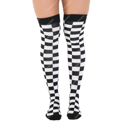 Crazy Chick® Checkered Over The Knee Socks in Neon Colours, OTK Green, Hot Pink, Orange, Yellow, Red & White (Checkered white)