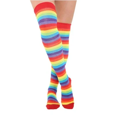 Crazy Chick New Ladies Girls Stripe Stripy Striped Over The Knee Thigh High Long Socks Assorted Colours UK Size 4 6 (Rainbow)