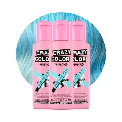 CRAZY COLOR: The highly pigmented Bubblegum Blue hair dye deposits an intense colour gently. Packed full of oils, our formula conditions as it delivers a Bubblegum Blue colour. READY TO USE AT HOME: With no ammonia and bleach, you can achieve your Pale Blue hair colour without damage. The lighter your hair, the more Pastel the shade. NO DAMAGE DYE: With Raspberry Seed, Sunflower Seed and Avocado Oil, our gentle formula nourishes your hair as it colours. Our Bubblegum Blue semi-permanent colour coats the outside of the hair, so is ideal for promoting good hair health, especially after bleaching. VEGAN FORMULA: We never test on animals, all our Crazy Color products are PETA-approved, 100% vegan and cruelty-free. We are also PPD-Free, Gluten Free and Paraben Free! MADE IN UK: Our Bubblegum Blue formulas are made in the UK. Our semi-permanent shade promotes gentle hair colouring on bleached, pre-lightened and natural hair.
