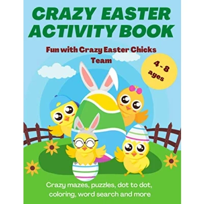 Crazy Easter Activity Book: for Kids ages 4 8 Mazes, Puzzles, Dot to Dot, Coloring, Word Search and More Lern & Fun Workbook Children 6