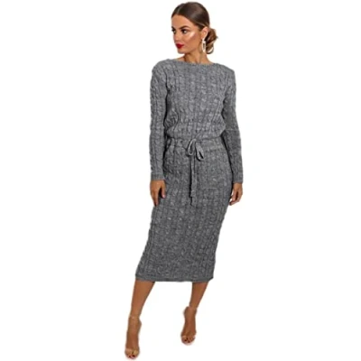 Crazy Girls Womens Cable Knit Belted Midi Dress, Charcoal, XL (UK 16 18)