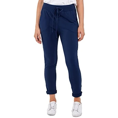 Crazy Girls Womens Italian Trousers, Plain Navy, XXL (UK 20 22)