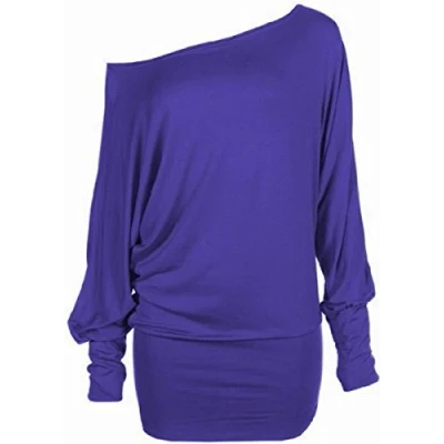 Crazy Girls Womens Long Sleeve One Off Shoulder Plain Baggy Batwing Top UK8 24, Purple, XL (UK 16 18)