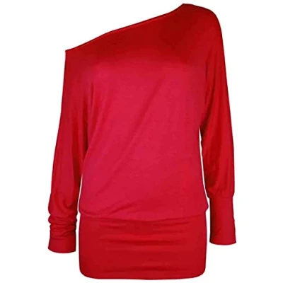 Crazy Girls Womens Long Sleeve One Off Shoulder Plain Baggy Batwing Top UK8 24, Red, 3XL (UK 24 26)