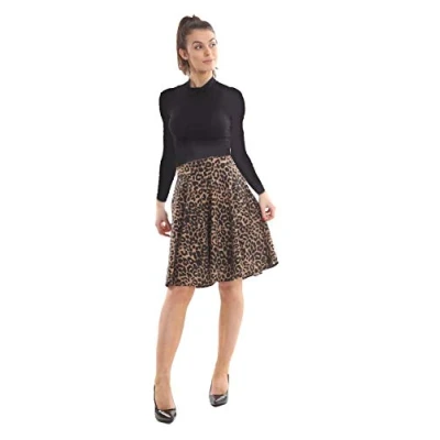 Crazy Girls Womens Midi Skater Skirt, Brown Leopard, 3XL (UK 24 26)