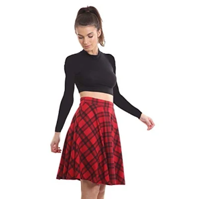 Crazy Girls Womens Midi Skater Skirt, Tartan Red, XL (UK 16 18)