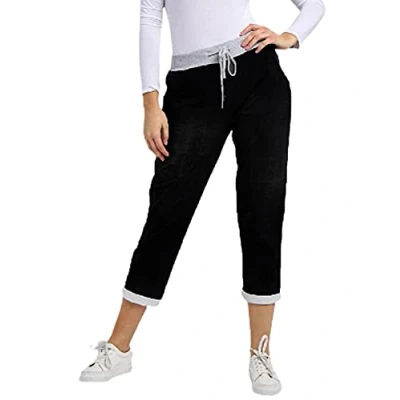 Crazy Girls Womens Plain Italian Floral Trousers, Black Denim, SM (UK 8 10)