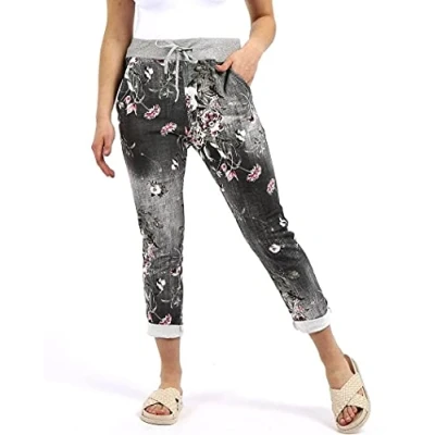 Crazy Girls Womens Plain Italian Floral Trousers, Black Floral, SM (UK 8 10)