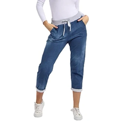 Crazy Girls Womens Plain Italian Floral Trousers, Dark Wash, SM (UK 8 10)