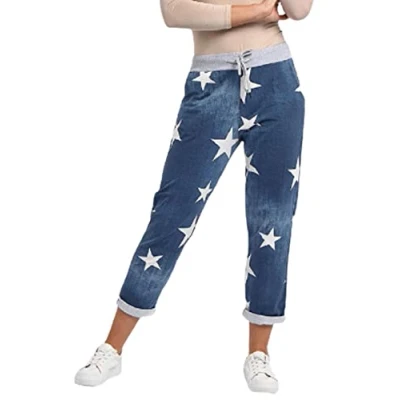 Crazy Girls Womens Plain Italian Floral Trousers, Denim Blue Star, SM (UK 8 10)