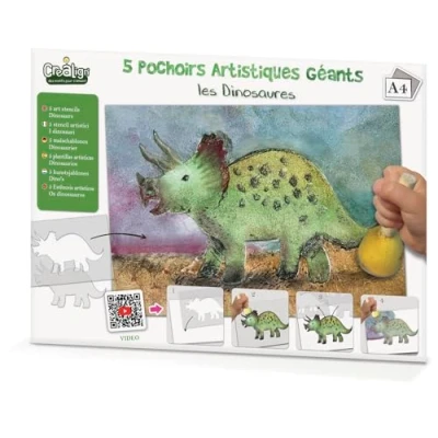 A pouch containing 10 stencils to make 5 different dinosaur drawings. Thanks to the shapes and counterforms of the art stencils, children can let their imagination run wild. Depending on the desired effect, we recommend using brushes, sponges, blow pens or rollers., Manufacturer: Créa Lign'