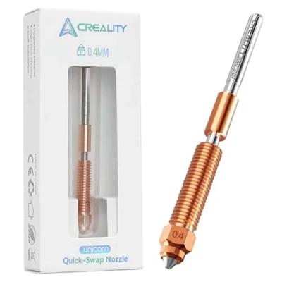 【Original Adaptation】Creality Official integrated nozzle is suitable for Creality K1 SE/K1C/K1/K1 Max/K2 SE/Ender 3 V3/Ender 3 V3 Plus/Ender 3 V3 KE/Ender 3 V3 SE 【Quick-Swap】 Creality K1C nozzle heat break is an all-metal integrated design for swift installation and easy replacement 【Upgraded Material】The heat break of Creality Ender 3 V3 Nozzle is made of titanium alloy, which can effectively reduce heat conduction. Creality nozzle 0.4mm are made of copper alloy and hardened steel bimetallic material, high thermal conductivity, high hardness, better performance. Support PLA, ABS, PETG, TPU, PP, PC, PLA-CF, PA-CF, PET-CF multiple filaments printing 【High-flow Printing】K1C Extruder hotend nozzle chamber is enlarged so that when the printing temperature is at 240°, the maximum flow rate can be up to 30mm³, supporting 600mm/s high-speed printing 【Crafted with Ingenuity】Joints fit tightly and effectively prevent filament leakage. Smooth inner wall for smooth feeding. No burrs at the orifice, stable printing, not easy to block the material.The advanced processing technology makes the printing model more smooth and delicate