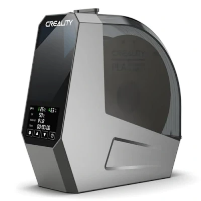 PTC 360° hot air heating: Creality Space Pi filament dryer heats quickly with a built-in fan that circulates hot air 360° to ensure even heating. This effectively dries moisture from the filaments and improves printing results. The Space Pi 3D Printer Filament Dryer uses a unique 110W PTC heater to warm up the room, ensuring even drying. Real-time humidity: The Space Pi filament dryer has a high-precision moisture and temperature sensor, which displays the humidity and temperature inside the filament drying box in real time. The touchscreen changes to display the working status of the filament drying box and allows visualization of the drying process of 3D printer filaments. Compatible with 12 types of printer filaments: Space Pi filament dryer has temperature presets for different filament types and supports up to 12 types of filaments, including common and powerful composite materials such as PLA, ABS, PETG, TPU, PP, PA, PC, ASA, PET, PLA-CF, PETG-CF, PA-CF, PA-CF. Perfect for all 3D printing filaments with 1.75 mm, 2.85 mm, nylon/PA/PC filament and other high-quality filaments. LCD touch screen: the Creality Space Pi filament dryer is equipped with a 3.7 inch touchscreen for easy operation, which allows you to easily monitor the drying conditions. The touchscreen also allows you to easily switch between °C and °F. Parameter power failure memory function: after a power failure, the machine can be restarted and still remembers your previous material and temperature presets. This eliminates the need for a reconfiguration and allows quick drying.