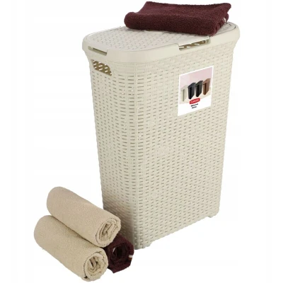 Cream CURVER 40 ltr Rattan Style laundry hamper, 3 colours available