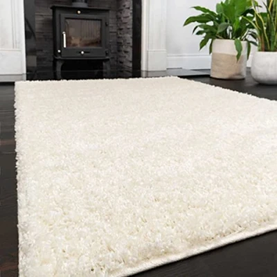 Cream Shaggy Lounge Living Room Rug Modern Off White Soft Plain Fluffy Bedroom Carpets Hallway Children's Mat Area Rugs 111cm x 161cm