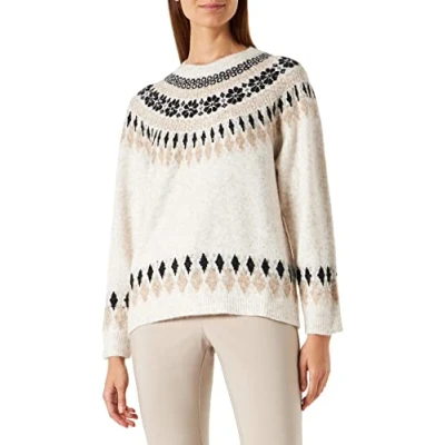 Cream Women's Sweater Knitted Pullover Long Sleeves Round Neck, Oat Melange, Large