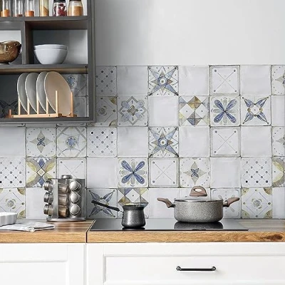 CREARREDA Kitchen Sign, Splashproof, Easy to Apply, Provence Tile Design, 260 x 60 cm, 100% Made in Italy, PVC, Fireproof and Water Resistant, Sink