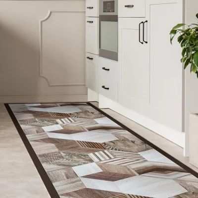 CREARREDA Non Slip and Washable Vinyl Kitchen Rug, Multi Purpose Runner, Wear resistant, Stain Resistant Suitable for Holding Under Sink Stoves, 100% Made in Italy Print
