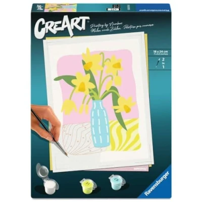 Creative activity for adults: with the complete sets of Ravensburger CreArt paint by numbers for adults, creative minds from 12 years old can start painting directly after unpacking Relaxation and stress relief: with a paint by numbers, the way to inner peace and relaxation is very easy, because the painting fields are numbered and are gradually coloured with the matching acrylic paint Creative wall decoration: the exact specifications guarantee an excellent painting result for a great DIY project and a trendy decoration in the living room or bedroom Gift idea: the daffodils motif is very trendy and is ideal as a gift for men and women - whether for Christmas, Easter or birthday The painting kit contains: acrylic paints in resealable, numbered pots, a painting board measuring 18.00 cm x 24.00 cm, a brush, instructions - the paints dry quickly, are water-based, odourless and do not require a brush cleaner, Manufacturer: Ravensburger