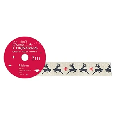 Create Christmas Cotton Ribbon, Reindeer, Multicoloured, 3m, The Ideal Ribbon for Card Making, Scrapbook Supplies, Tree Decorations and Festive Bows