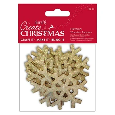 Create Christmas Glittered Wooden Toppers, Hexagon Snowflakes, Gold, Pack of 12, Suitable for Home, Wood Paint, Toys and Card Craft, Ideal Decorations Making Supplies