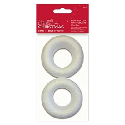 Create Christmas Make Your Own Mini Polystyrene Wreaths, Decorations 4 Pieces, For Adult And Kids Craft Decoration, DIY Art