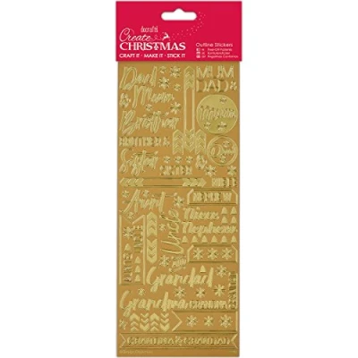 Create Christmas Outline Stickers Contemporary Relations, Gold, Single Sheet, Ideal Labels for Card Making, Craft Projects and Scrapbook
