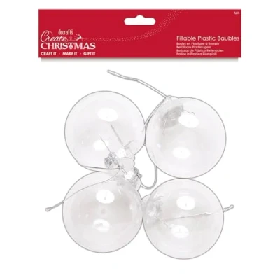Create Christmas Plastic Clear Fillable Baubles 4 Pieces 8cm, Craft, Decoration, Holidays, Tree Hanging, Seasonal Ornaments