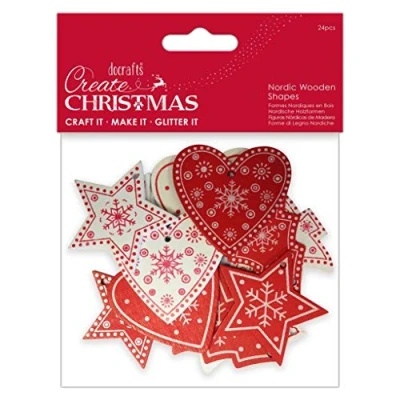 USE – Add these Nordic wooden shapes to your festive crafts and creations. IDEAL – Add these wonderful festive embellishments to scrapbook layouts, handmade cards, gift wrapping or use them for extra decoration around the home. The creative design possibilities are endless. EMBELLISH – If you’re feeling creative you can add your own touch of personalisation to them. Add some glitter and watch them sparkle. CONTENTS – The pack contains an assortment of 24 wooden shapes in Nordic designs of Christmas trees, stars and hearts.