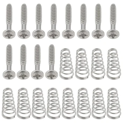Compatible with Fender Squier. The screw size is 3x6x20mm, which is highly compatible and suitable for a variety of electric guitar pickup mounting holes and structures. Made of metal, it is corrosion-resistant and rust-resistant, which prolongs the service life and ensures that it will not deform after long-term use. The spring rebound force is moderate, which supports the flexible adjustment of the pickup height, facilitates precise tuning, and improves the playing feel and tone performance. Each set contains 12 screws and springs, which can be directly replaced or installed without additional accessories.