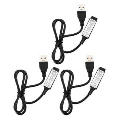 Create idea 3Pcs 5 12V USB LED Strip Controller 3 Keys 4Pin Remote to 3Pin 5V RGB Light Switch Cable for Black 51cm
