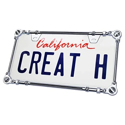 3D screws shape patterned license plate frame comes from one batch froming die cast which makes the frame durable The plate frame's finish treatment is the same as bathroom accesories,water proof Universal size fits all north america plate frames This plate frame's size 12.56*7.09*0.51 inches,weights 6.35 ounces