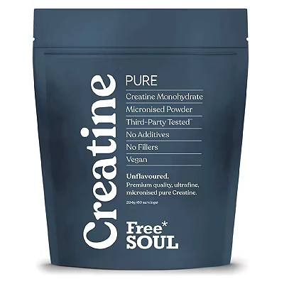 Creatine Monohydrate Powder 100% Pure Micronised Easily Dissolves Unflavoured Vegan Lab Tested 60 Servings Free Soul