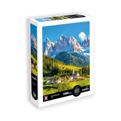 Discover the stunning world of the Italian Alps with the 1000-piece puzzle "Dolomites" by Calypto. Immerse yourself and experience one of the most beautiful mountain landscapes in the world. The high-quality soft-touch surface gives the puzzle a velvety hand feel for a soft puzzle. In addition, the matte non-glare look prevents the puzzle surface from mirroring. The puzzle comes with a motif sheet as a puzzle template. The decorative play box with soft-touch feel for storage also serves as a template and rounds off the high-quality puzzle experience perfectly. Calypto puzzles are made from more than 80% recycled materials and made in France. Quality and unique motifs create incomparable puzzle experiences for young and old. Contents: 1 x 1000 piece Calypto puzzle (placed size: 68.5 x 49 cm). Recommended for ages 9 and up.