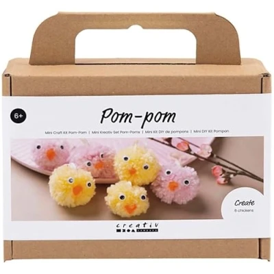 Creativ Mini Craft Kit – Pom-Pom Easter Chicks (Assorted Colours) | 1 Pack. Create your own fluffy flock with the Creativ Mini Craft Kit Pom-Pom Chicks. This fun and easy Easter craft kit for kids lets children and adults make adorable pom-pom chickens in bright assorted colours – perfect for spring decorating and seasonal craft sessions.. Complete Pom-Pom Chick Craft Kit. Create multiple Easter chicks: Design your own cute handmade decorations.. Assorted colourful yarn: Bright spring shades for cheerful results.. Pom-pom tool included: Easily form full, fluffy pom-poms.. All materials & instructions included: Everything you need to get started.. Fun & Creative for All Ages. Make pom-poms using the included tool. Decorate with beaks and eyes to bring your chicks to life. Encourages creativity and fine motor skill development. Perfect for Easter holidays, classroom crafts and family activities. This DIY pom-pom chick kit is a simple and engaging way to celebrate spring. Display your finished Easter chick decorations on tables, shelves or seasonal displays to add a playful handmade touch to your home.. Product Details. Product: Creativ Mini Craft Kit – Pom-Pom Chicks. Colours: Assorted bright shades. Contents: Yarn, pom-pom tool, decorative elements & instructions. Pack size: 1 pack. Theme: Easter & Spring crafts