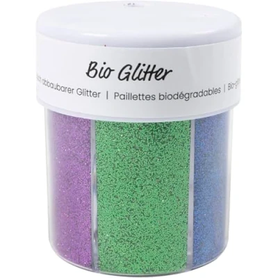 Biodegradable Eco-Glitter for Crafts. Add dazzling, sustainable sparkle to your creative projects with our biodegradable glitter. Made from responsibly sourced eucalyptus cellulose, this eco-friendly glitter is 100% plastic-free and compostable, helping you reduce environmental impact without sacrificing shine.. Eco-Conscious Choice: Crafted from natural, renewable materials with forestry certification for responsible sourcing.. 100% Plastic-Free: Breaks down naturally in water and compost environments, leaving no harmful microplastics behind.. Brilliant Glitter Effect: Delivers vibrant, eye-catching sparkle on all your craft projects.. Versatile Application: Perfect for use on paper, wood, cardboard, and decorative surfaces.. Easy to Use: Sprinkle over wet paint, glue, or double-sided tape for beautiful, professional results.. Usage Tips:. Ideal for adding shimmer to handmade cards, ornaments, scrapbooks, and more.. Mix with Sticky Base or similar adhesives for secure application.. For best results, avoid mixing directly into watery or slow-drying media to reduce risk of color bleeding.. Choose an environmentally responsible way to bring your creative visions to life. Make the switch to our biodegradable glitter and craft with confidence—beautiful, sustainable, and guilt-free.