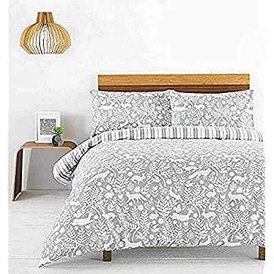 AmazonMinimalist Scandinavian woodland animal print with striped reverse. Made of 100% brushed flannelette cotton for the cosiest sleep of your life. This duvet cover features a secure button closure while the pillowcases have an envelope closure. Includes one matching housewife pillowcase measuring 50 x 75cm (20" x 30"). Pillowcase inserts should measure 50 x 75cm (20 x 30") or less. Fully machine washable at 40 degrees. Tumble dry appropriate and iron on a hot setting.