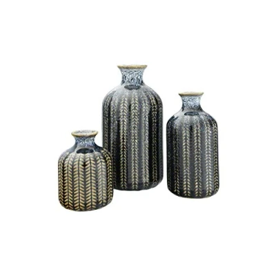 Creative Co Op Embossed Stoneware Reactive Glaze Finish (Set of 3 Sizes) Vase Set, Blue