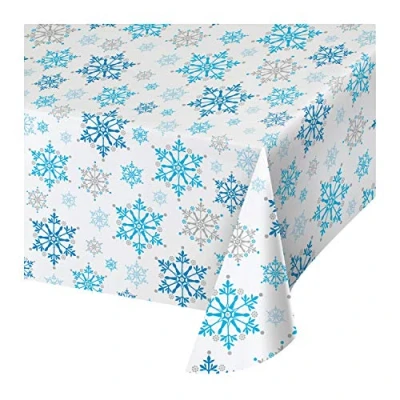Package includes 1 Tablecover Decorate your party table in style This tablecover comes in an all-around print of blue and white snowflakes in different sizes on a white background Use this product to accentuate party tables and coordinate to your snowflakes party theme Made of plastic, this product is easy to install and can be easily cleaned and stored to use again