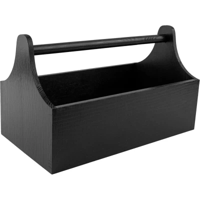 Creative Deco Black Wooden Toolbox Storage Box with Handle 34 x 18 20.5 cm (+/ 0.5 cm) Natural Wood Tool Bag Garage Craft Gift