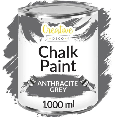 Creative Deco Dark Grey Chalk Paint for Furniture 1L Deep Stone Matte & Chalky Finish Smooth Touch Interiors Quick Dry Wood Renovation Decoration