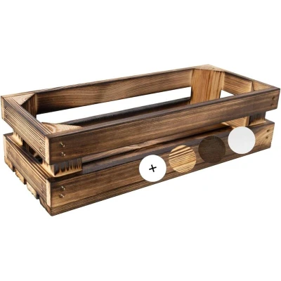 INTERESTING DESIGN – Our decorative wooden crate is made from flamed wood boards, combining aesthetics and functionality. Its modern design fits perfectly into any room in the home and can also be used outdoors to add a natural decorative touch. IDEAL SIZE – With external dimensions of 34 x 14 x 9 cm, this rectangular natural wood crate offers many possible uses. It can be used as a gift box, storage box or as a base for your creative DIY projects. VERSATILE – This wooden crate is a multifunctional product, ideal for organising and decorating your space. Perfect for storing photos, documents, toys, tools, accessories, or even as storage for wine bottles, fruit or various items. HIGH QUALITY – Made from high-quality pine wood, this crate is strong and durable. Not only attractive, it is also highly functional, allowing you to organise and decorate your space with ease. MADE IN THE EU – Our products are manufactured in the European Union in accordance with strict quality standards. We