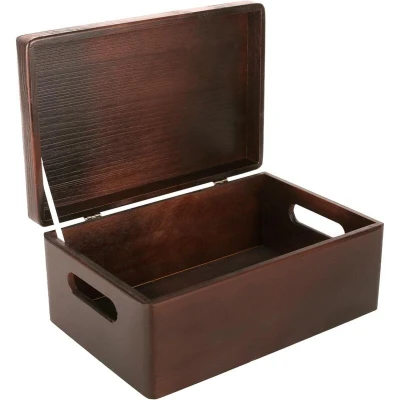Creative Deco Large Brown Wooden Storage Box 30 x 20 14 cm (+/ 1 cm) with Hinged Lid & Handles Gift for Christmas Xmas Kitchen Wood Keepsake Memory Craft Chest