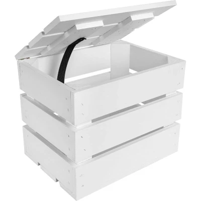 INTERESTING DESIGN – The storage chest is made from white-painted wooden boards, creating a look inspired by vintage boxes. This classic and elegant design blends perfectly with many interior styles, adding a decorative touch to your space. IMPORTANT NOTICE – Due to the natural properties of wood, a slight white film may appear on the surface. If this occurs, simply wipe the box with a dry cloth and leave it in a warm, dry place for about one week to eliminate excess moisture. PERFECT SIZE – With external dimensions of 27.5 x 20 x 21.5 cm, this rectangular wooden box with lid is ideal for versatile use. It can be used as a gift box or for storing blankets, tools, accessories, documents, toys and more. HIGH QUALITY – Made from solid and durable pine wood, this box combines aesthetics and functionality, offering excellent resistance for everyday use. SPACE ORGANISATION – Customise the box to suit your needs by adding dividers and compartments for optimised and personalised storage. MADE