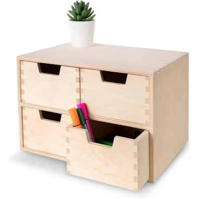 Creative Deco Mini Wooden Chest of Drawers 28.5x20x19cm 4 Compartments Desk Organiser for Paper Work Documents Plain Stationary Office Accessories Large Storage Box with Drawer