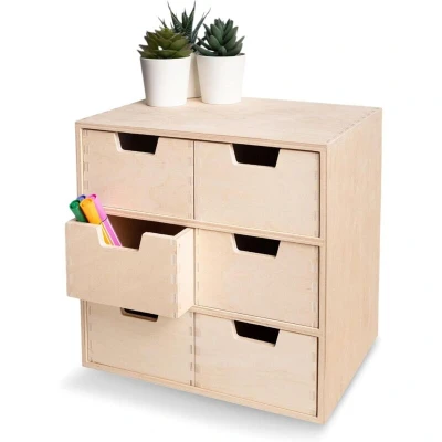 Creative Deco Mini Wooden Chest of Drawers 28.5x20x28.5cm 6 Compartments Organiser for Paper Work Documents Plain Stationary Office Accessories Large Storage Box with Drawer