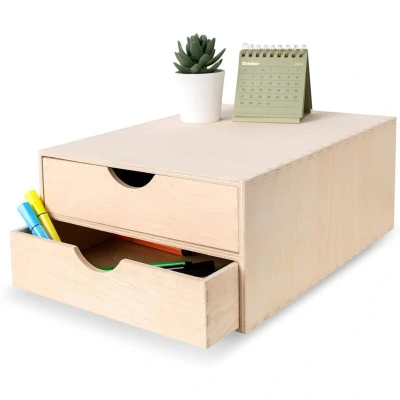 Creative Deco Mini Wooden Chest of Drawers 33x25x13.5cm 2 Compartments Desk Organiser for Paper Work Documents Plain Stationary Office Accessories Large Storage Box with Drawer