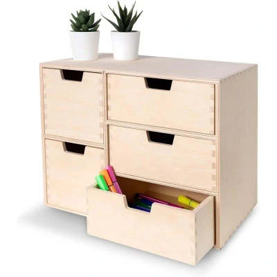 Creative Deco Mini Wooden Chest of Drawers 36x20x28.5cm 5 Compartments Desk Organiser for Paper Work Documents Plain Stationary Office Accessories Large Storage Box with Drawer